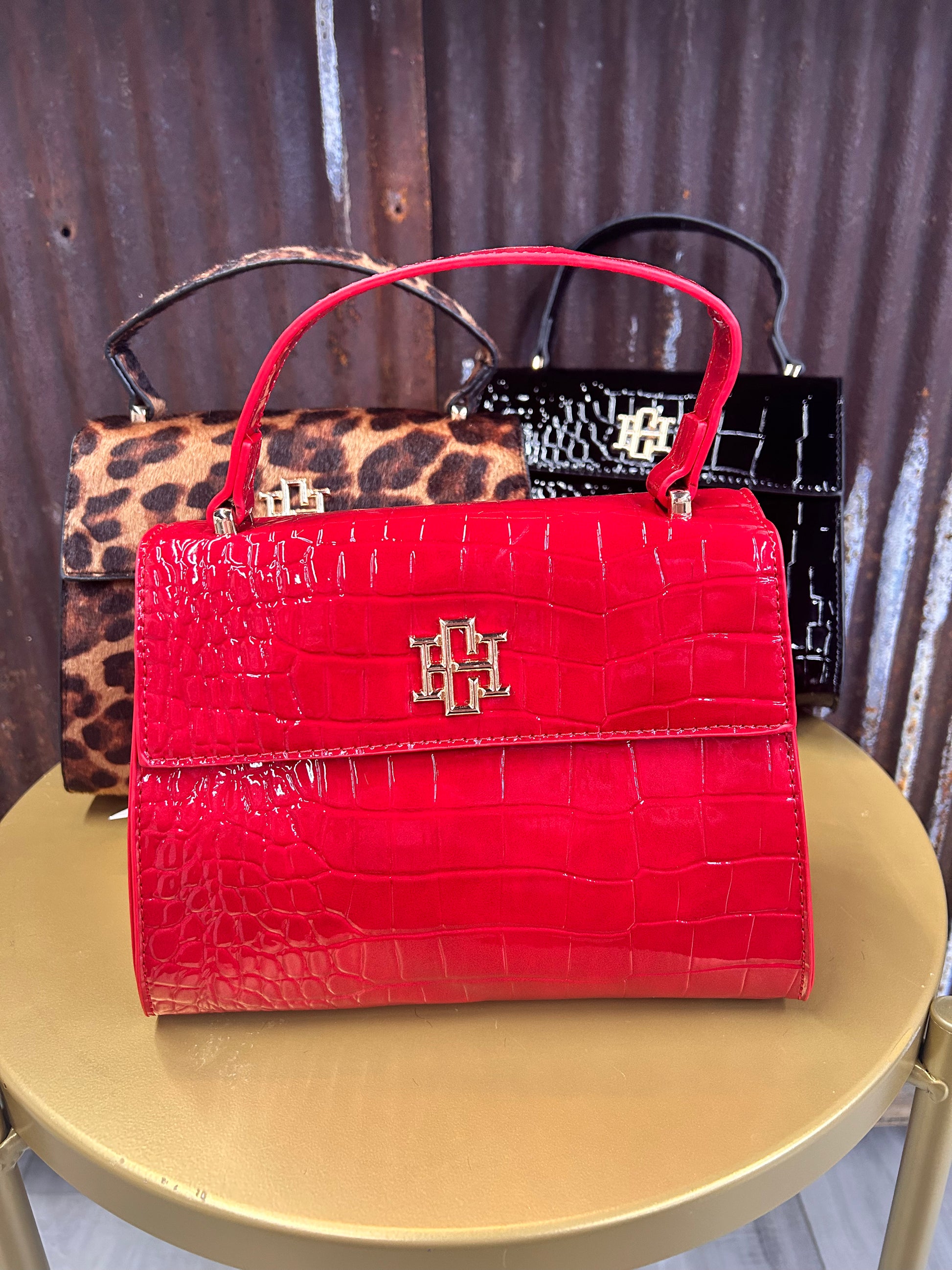 This vegan leather crossbody is so fashion forward! It has a chunky gold chain accent that is removable, and it can be used as a carrying strap as well. The crossbody strap is made of nylon and is also adjustable and removable. It also has two smaller internal open pockets and one zippered pocket.