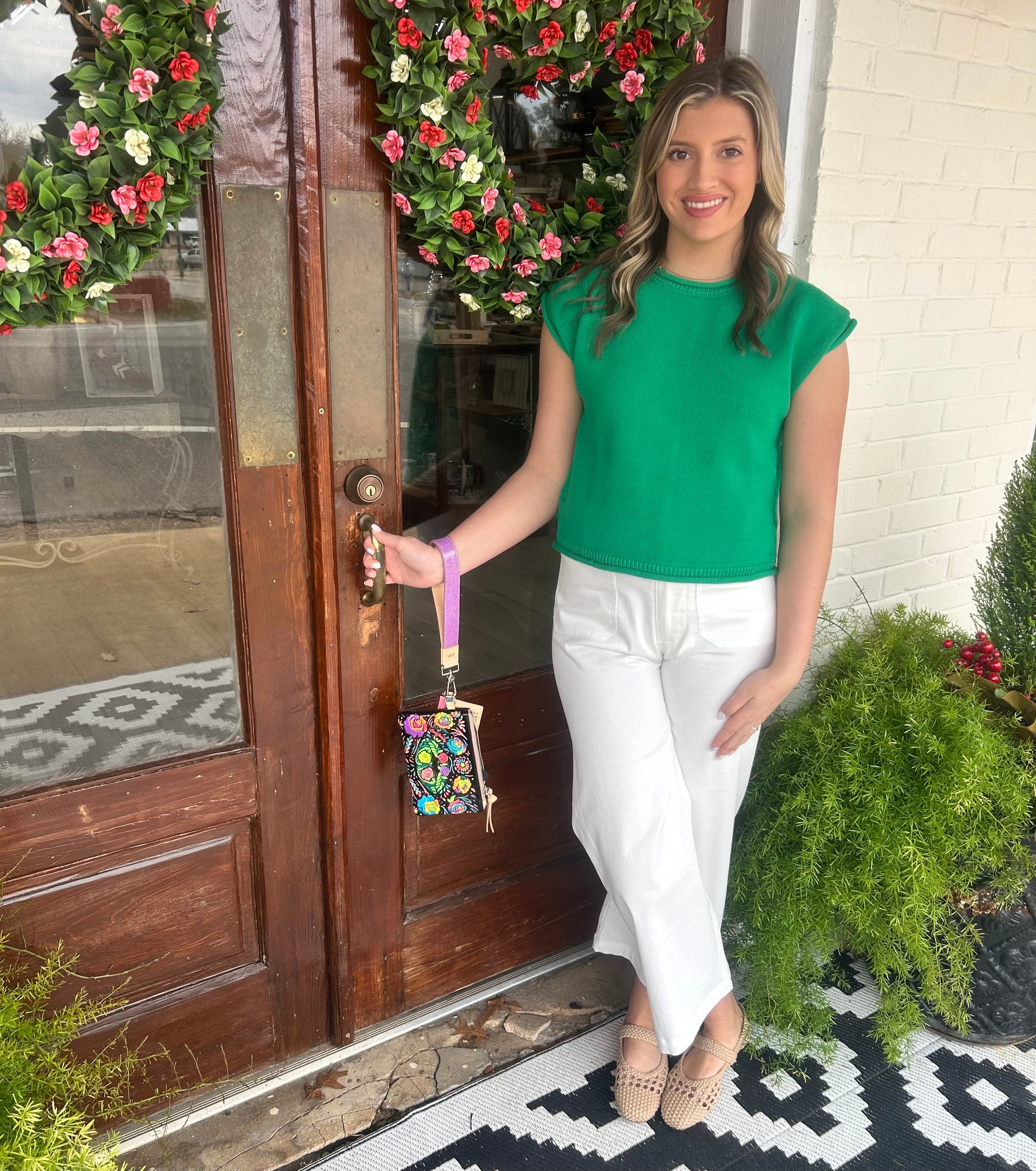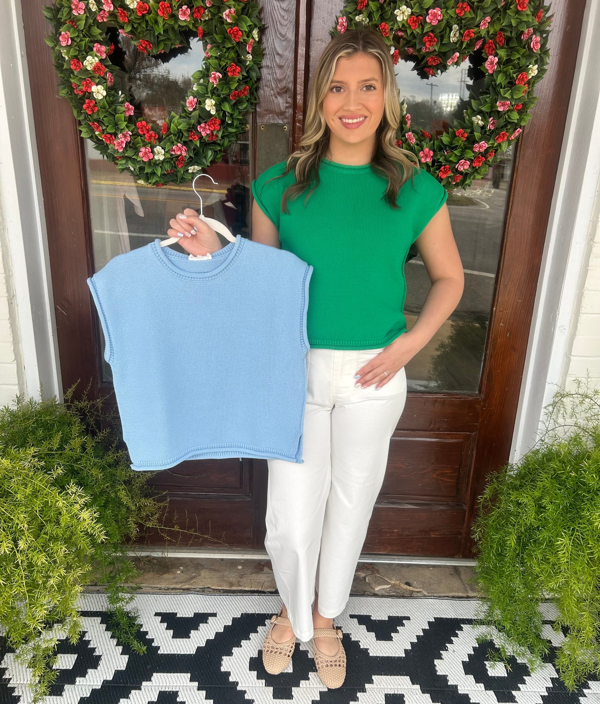 Soft knit with rolled edges. The perfect spring top to dress up or down. Quality gauge knit