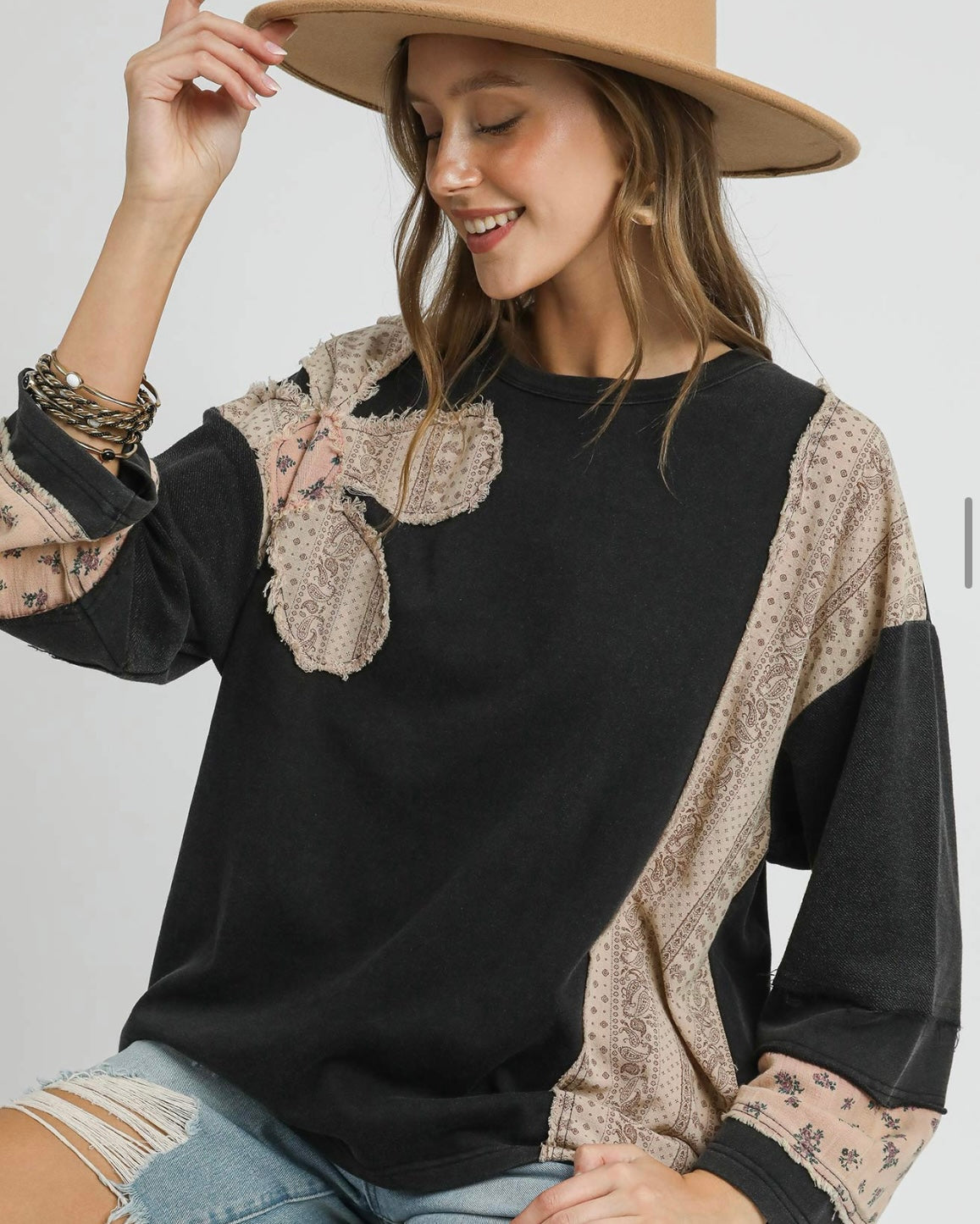 Soft sweatshirt material with multi fabric appliquéd flower detail. Relaxed fit. Pair it with our matching knit loose pants