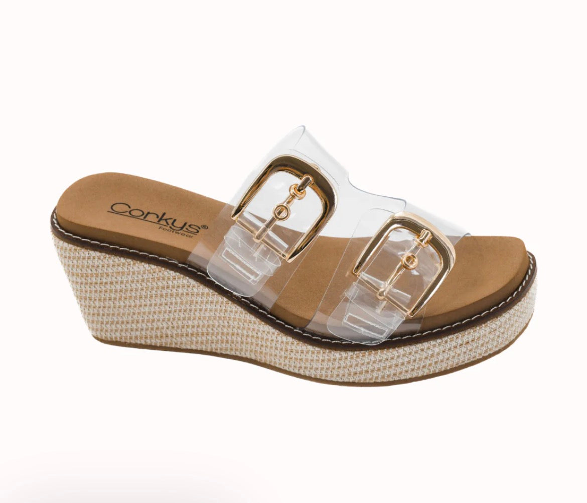 Corkys only come in wholes sizes but usually fit true to size. If you're between sizes, you'll want to size up unless your feet are very narrow. The mid 2.5" heel is great if you have a regular to high arch. And with the adjustable straps you'll be able to tighten or loosen them to your perfect width fit!